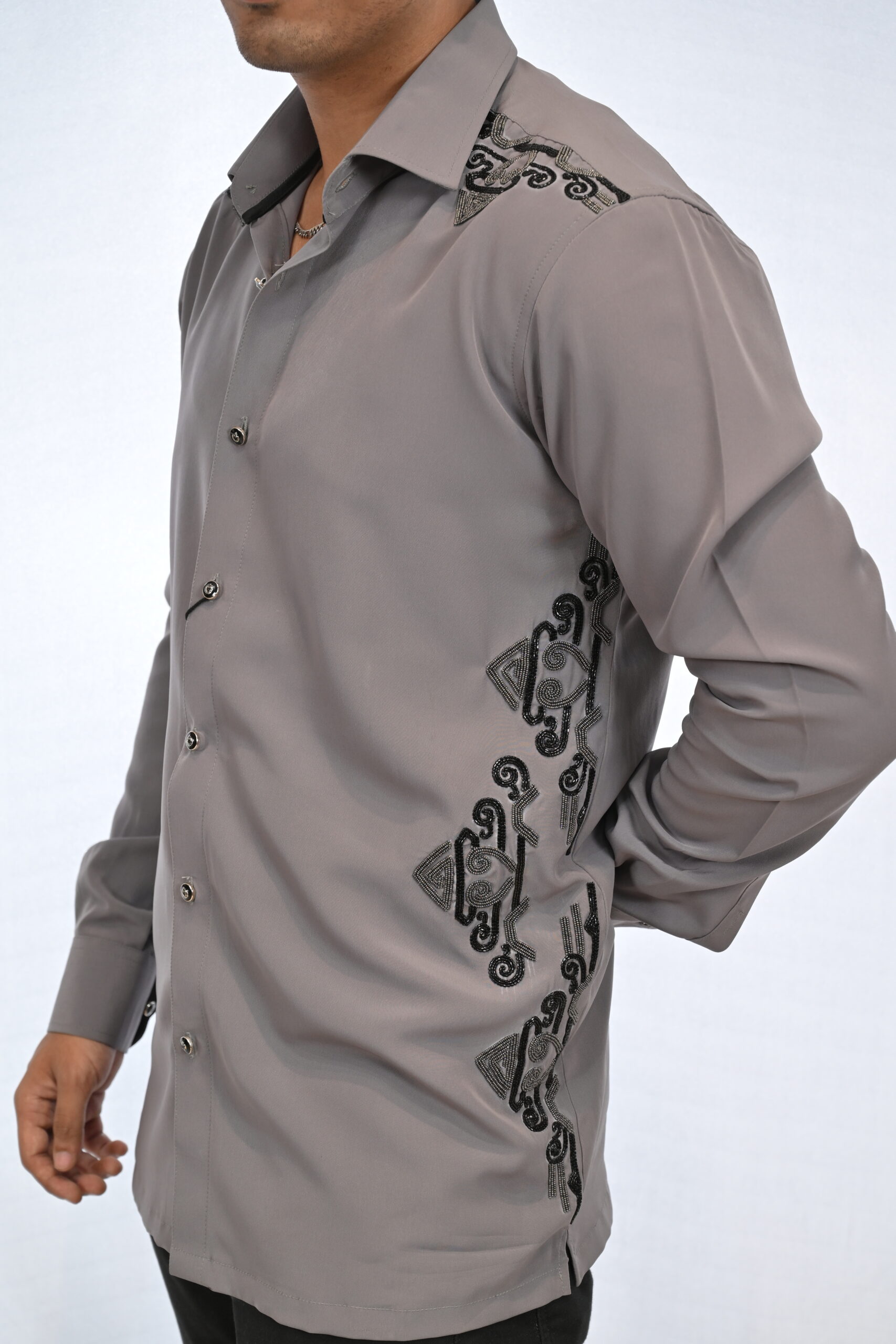 Grey Embroidered Shirt