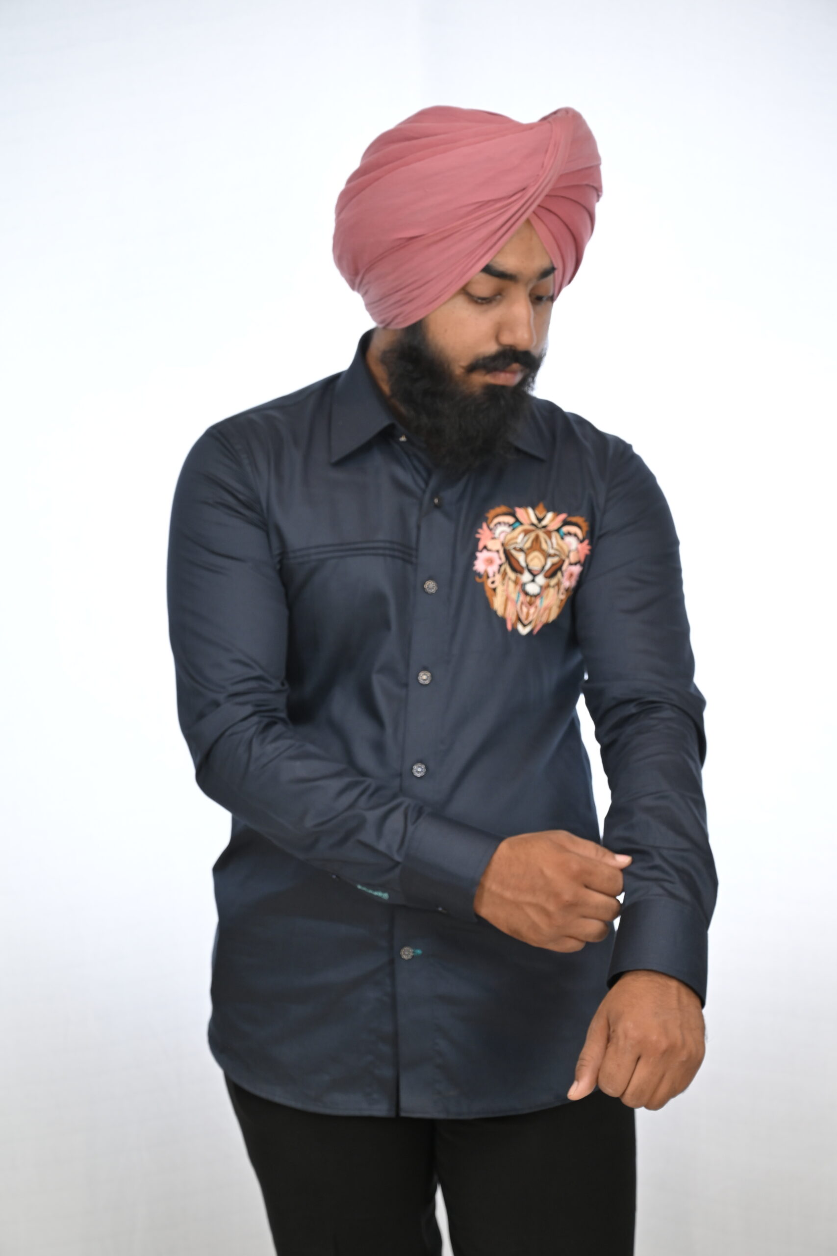 Unleash a bold and regal style for your little one with this classic navy shirt, featuring a majestic multi lion embroidery. Perfect for birthdays, formal gatherings, or themed parties, this shirt ensures your young gentleman shines with confidence and charm.