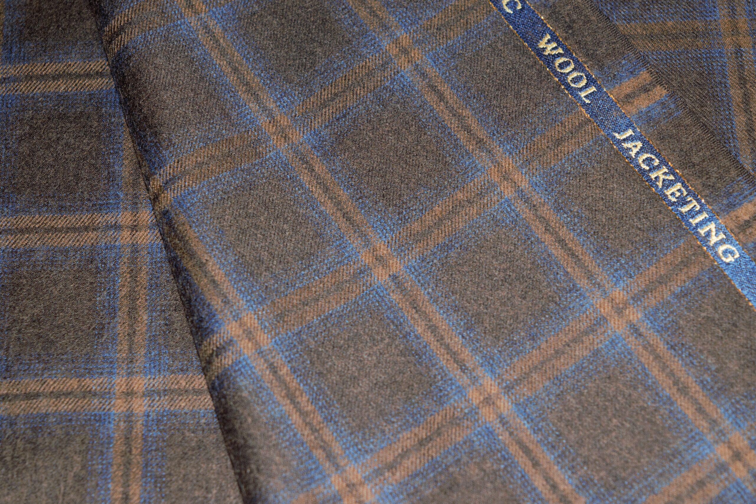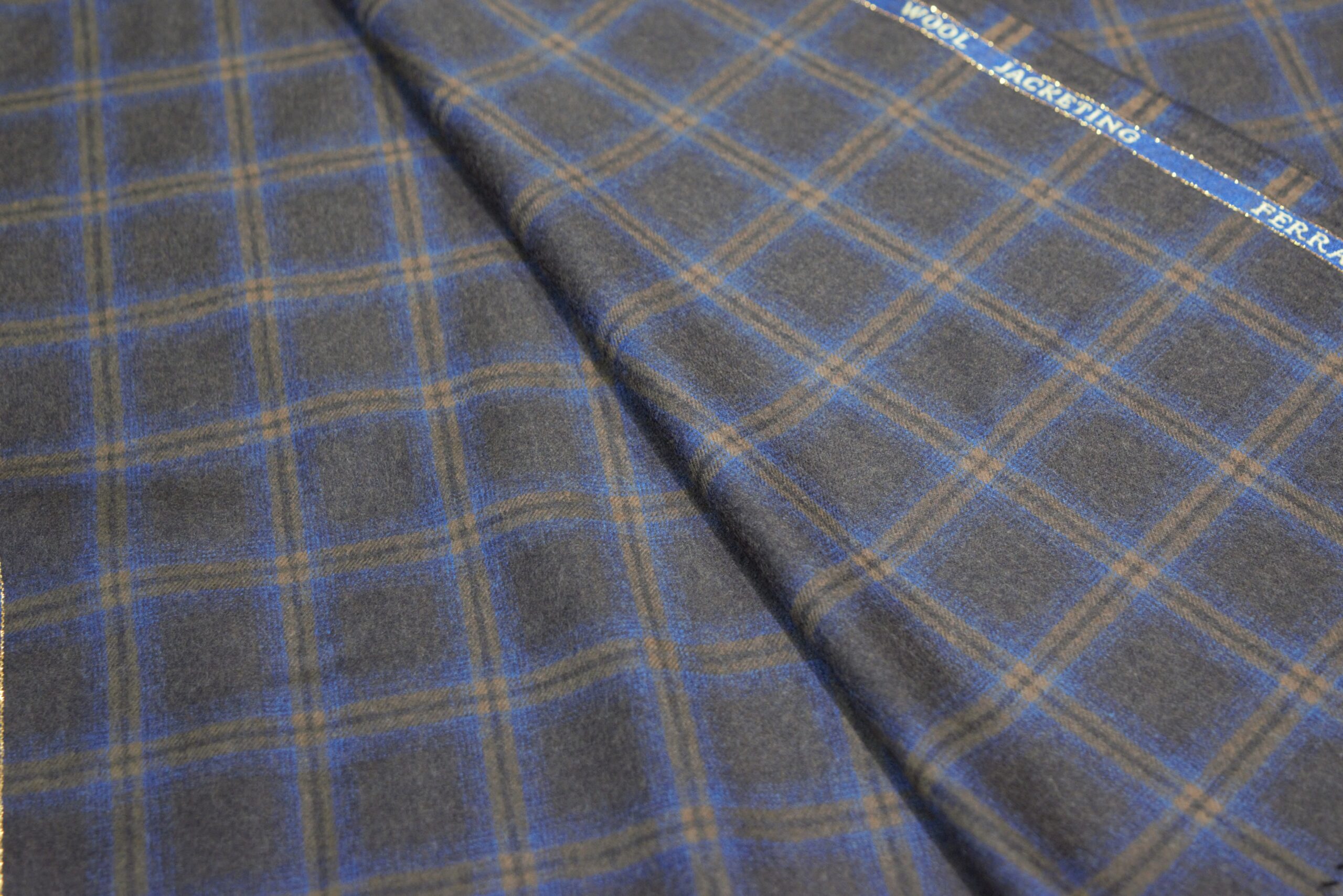 Ferrara Dark Blue and Brown checked Unstitched Suiting Fabric