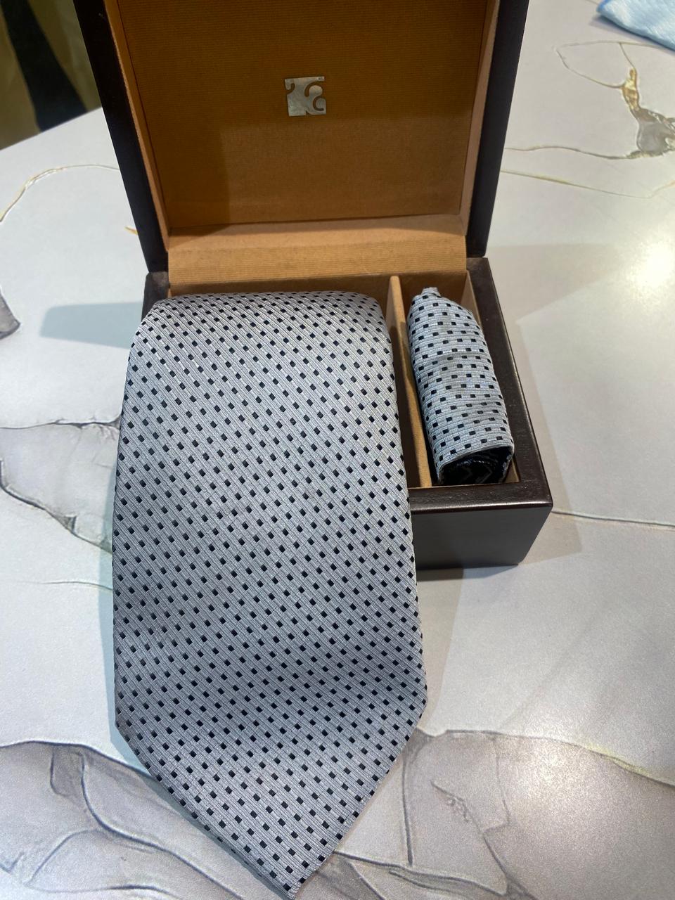 The Grey Silk Necktie exudes elegance and sophistication. Crafted from luxurious silk, it features a vibrant grey hue with black dots, adding a touch of personality to any formal ensemble. Elevate your style with this exquisite accessory that demands attention and admiration.